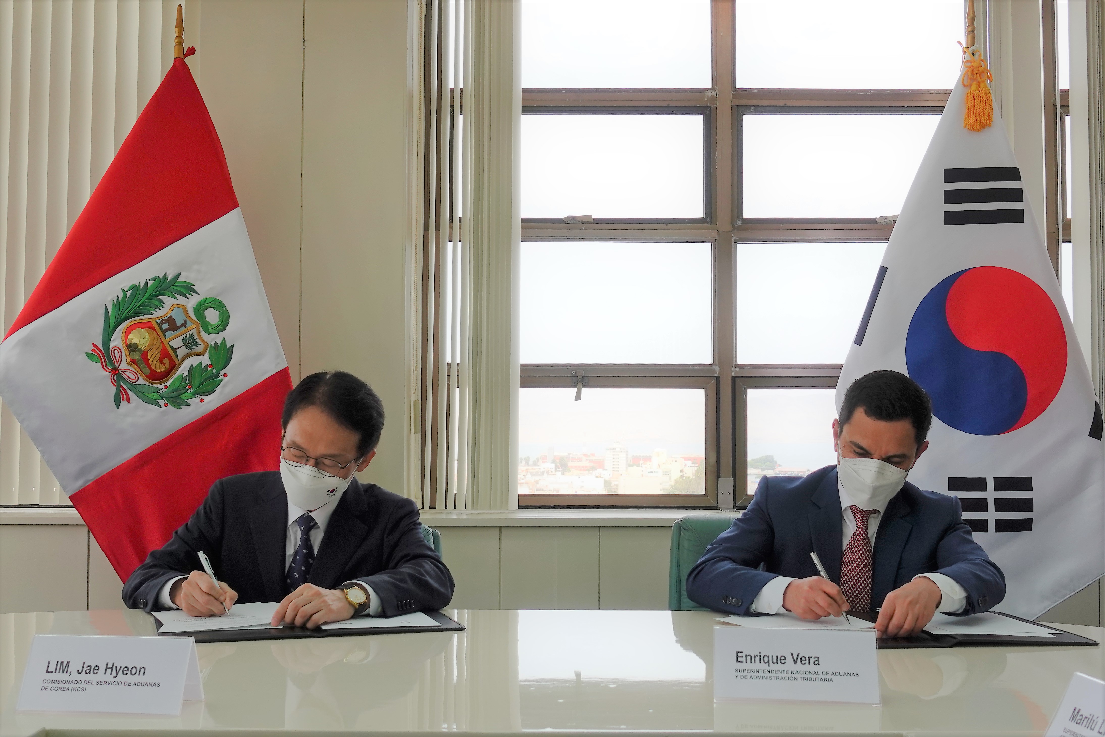 | ▲사진 왼쪽 임재현 관세청장은 사진 오른쪽 페루 조세청장과 세관상호지원 양해각서를 체결했다 |