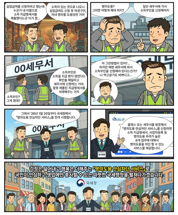 | ▲국세청의 명의도용 안심차단 서비스 안내 만화 |