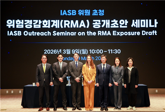 한국회계기준원(원장: 곽병진)은 3.9일부터 3.10일까지 양 일간 국제회계기준위원회(이하 ‘IASB’) 위원인 리카 스즈키(Rika Suzuki)와 하깃 캐런(Hagit Keren)을 초청, IASB가 지난해 말 발표(‘25.12.3일)한 ‘위험경감회계*’ 공개초안에 대한 세미나와 Outreach를 개최했다.