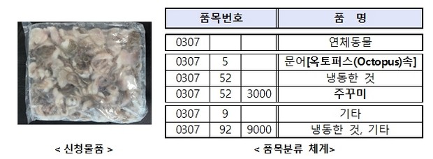 관세청에 따르면, 지난 관세품목분류위원회에서는 주꾸미를 절단해 소매포장한 후 냉동한 물품에 대해 ▲옥토퍼스(Octopus)속의 주꾸미(제0307.52-3000호, 한·아세안FTA0%), ▲기타의 연체동물(제0307.92-9000호, 한·아세안FTA5%) 중 어느 항목에 해당하는지 심의했다.