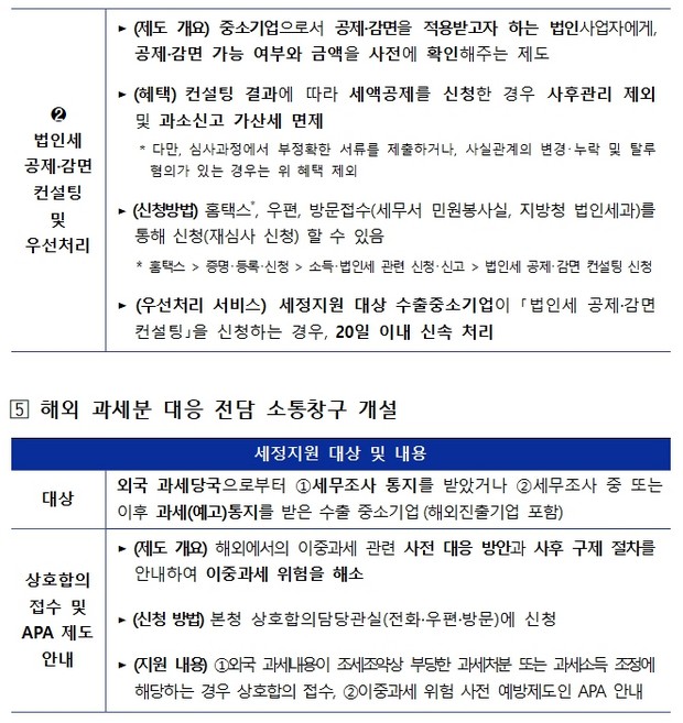 이 날 국세청이 발표한 수출 중소기업 맞춤 세정지원책의 내용은 다음과 같다.