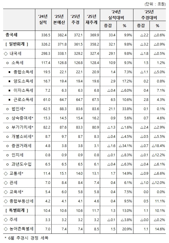 | ▲’25년 국세수입 재추계[기획재정부 제공] |