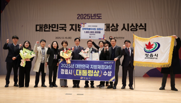 무기명정기예금 등 은닉성 채권 추적조사로 조세정의를 실현한 경기도와 행정 혁신을 통한 예산 절감 및 재정 효율화 성과를 낸 전북 정읍시가 주민의 세금을 아끼고 잘 쓴 지방정부에게 수상하는 '2025 대한민국 지방재정대상' 시상식에서 대상인 대통령상을 받았다.