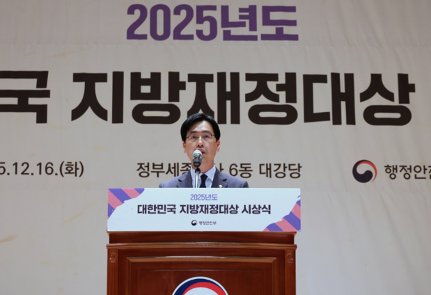 행정안전부(장관 윤호중)는 12월 16일(화) 정부세종청사 대강당에서 ‘2025 대한민국 지방재정대상’ 시상식을 개최했다고 밝혔다.