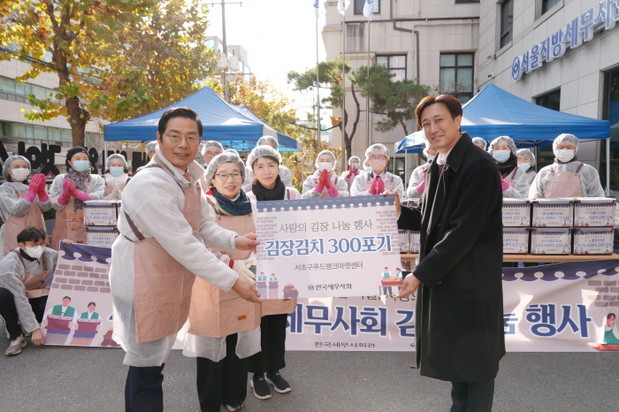 또, 이날 행사를 통해 완성된 김장김치 300포기는 한국세무사회관에서 열린 전달식을 통해 서초구 푸드뱅크마켓센터에 전달됐다. 센터는 지역 취약계층을 대상으로 식품과 생필품을 지원하는 서초구 대표 공공복지 플랫폼으로, 이번 김장김치는 저소득층과 장애인가정, 복지 사각지대의 취약계층 등 지원이 필요한 가정에 배분될 예정이다.