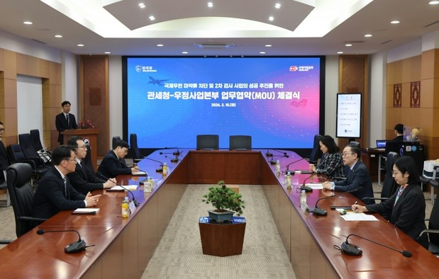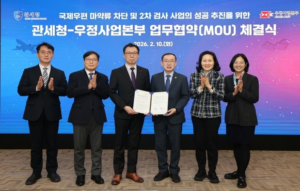 관세청(청장 이명구)과 과학기술정보통신부 우정사업본부(본부장 직무대리 곽병진)는 2월 10일 서울세관에서 국제우편을 통한 마약류 반입을 원천 차단하기 위해 ‘국제우편 마약류 차단 및 2차 검사 사업의 성공 추진을 위한 업무협약(MOU)’을 체결했다.