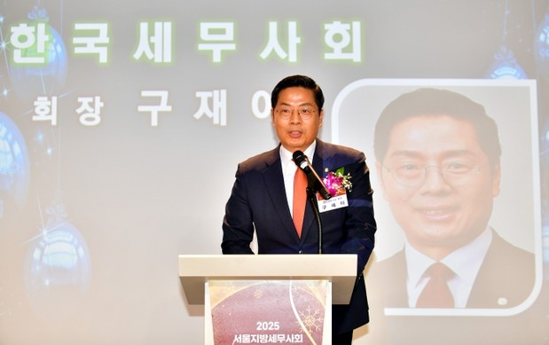 | ▲서울세무사회 송년회에서 축사를 하고 있는 구재이 한국세무사회장. |