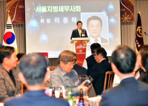 | ▲이종탁 서울세무사회장이 18일 서울세무사회 송년회에서 인사말을 하고 있다. |